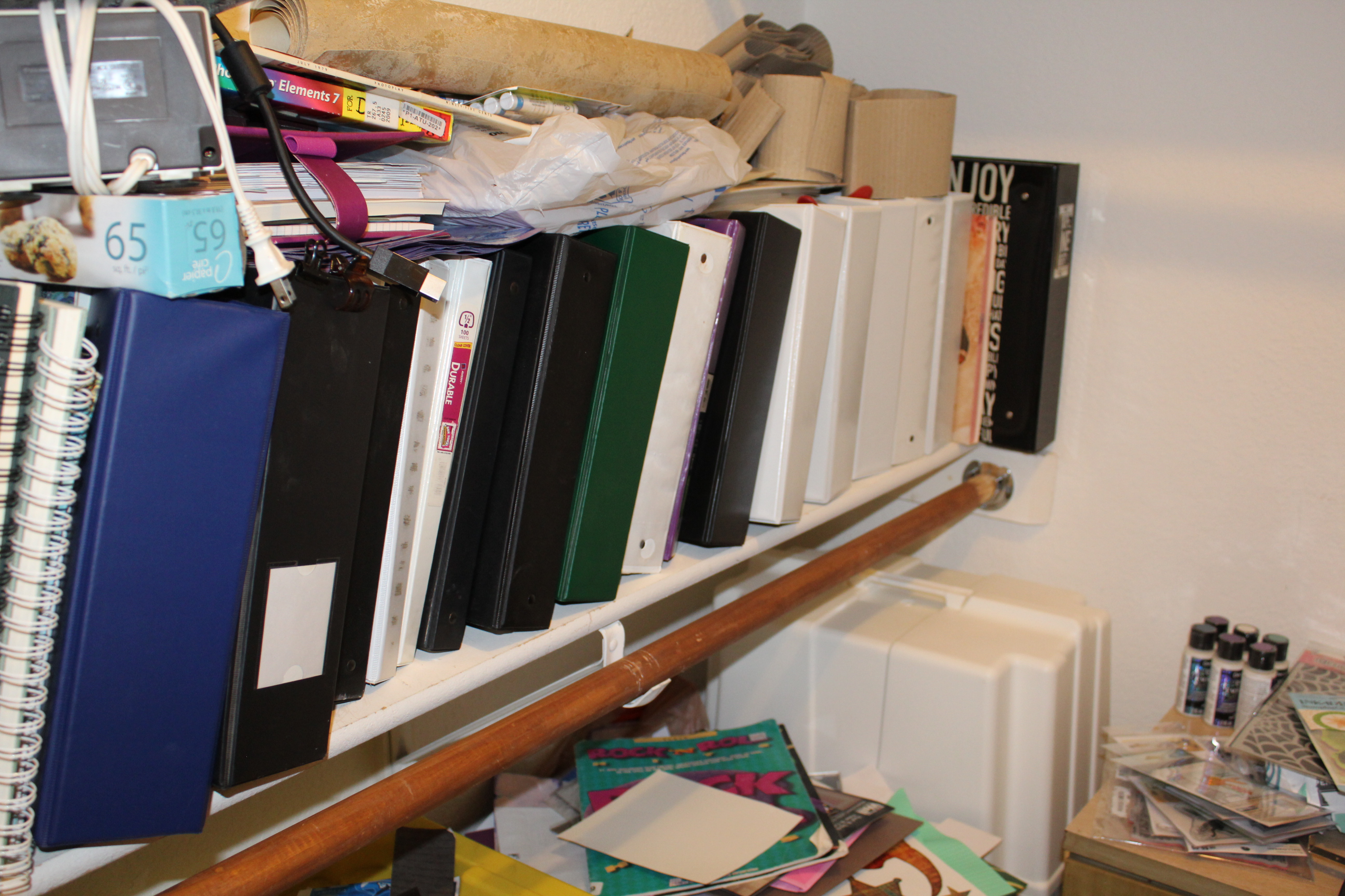 This is a closet I have all my sewing and rubberstamping supplies in. Currently, semi-organized. Most of the binders are full of stamps and stencils.